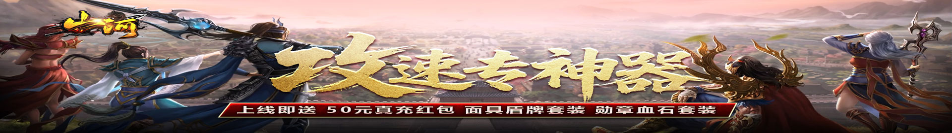 专属新手套装:面具盾牌套装、勋章血石套装一键领取,前期打怪畅行无阻