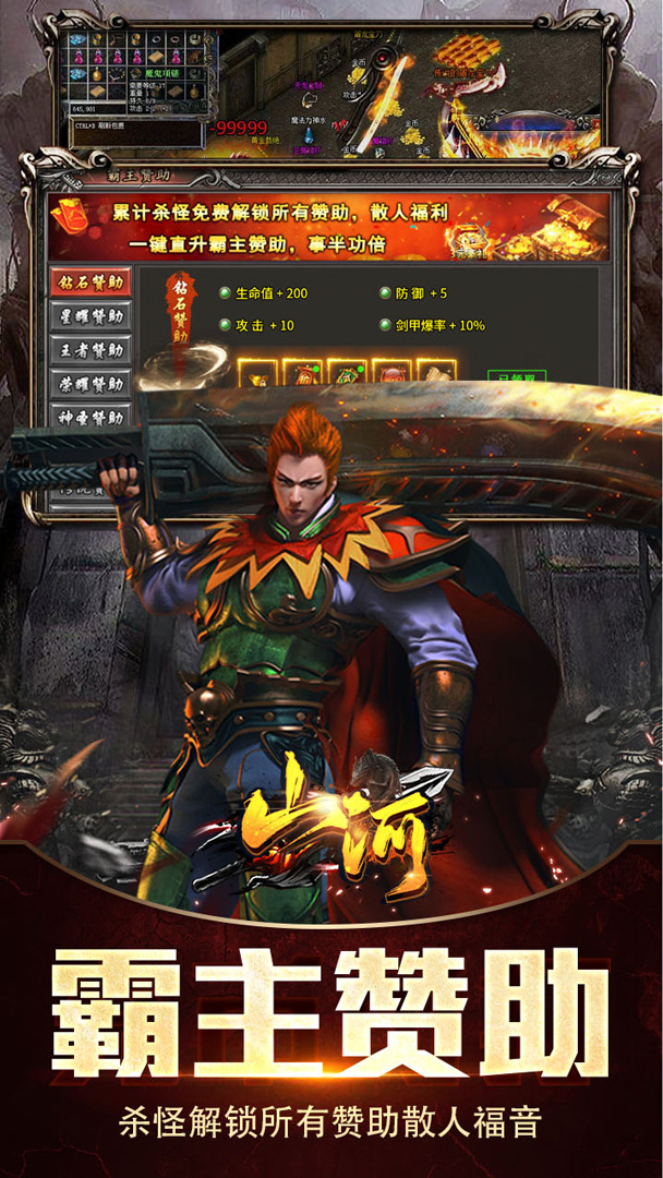 良心赞助模式:霸主赞助无需充值,通过击杀怪物即可解锁全部赞助特权,散人逆袭不是梦
