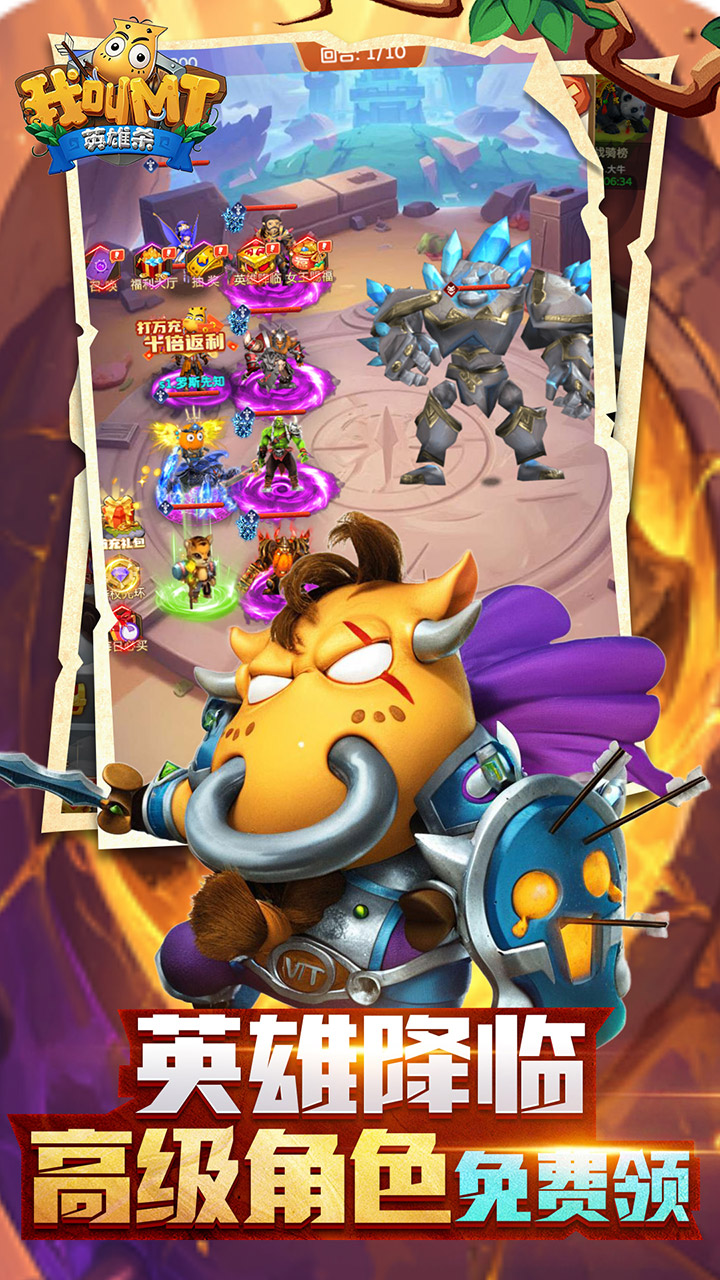 1.上线送极品SSR英雄-馒头儿、3280元充值卡、绝版称号、海量装备抽奖券