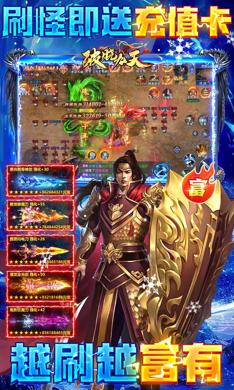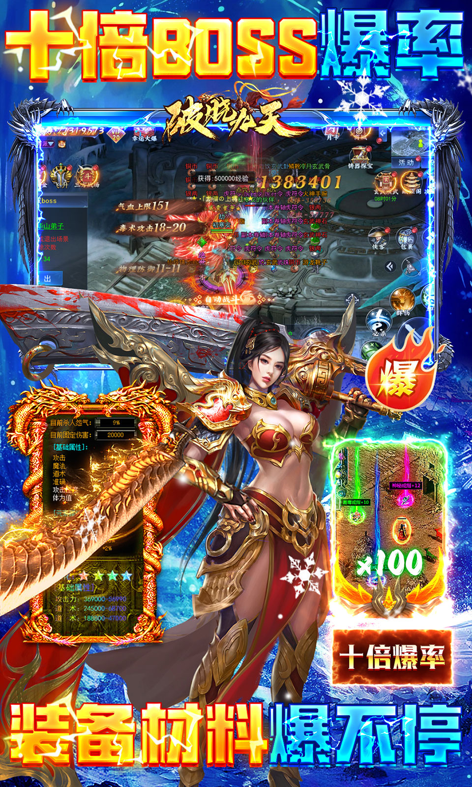 ★十倍BOSS爆率全面开放,极品装备和稀有材料疯狂掉落,结合无限回收系统,轻松获得用不完的银两和资源