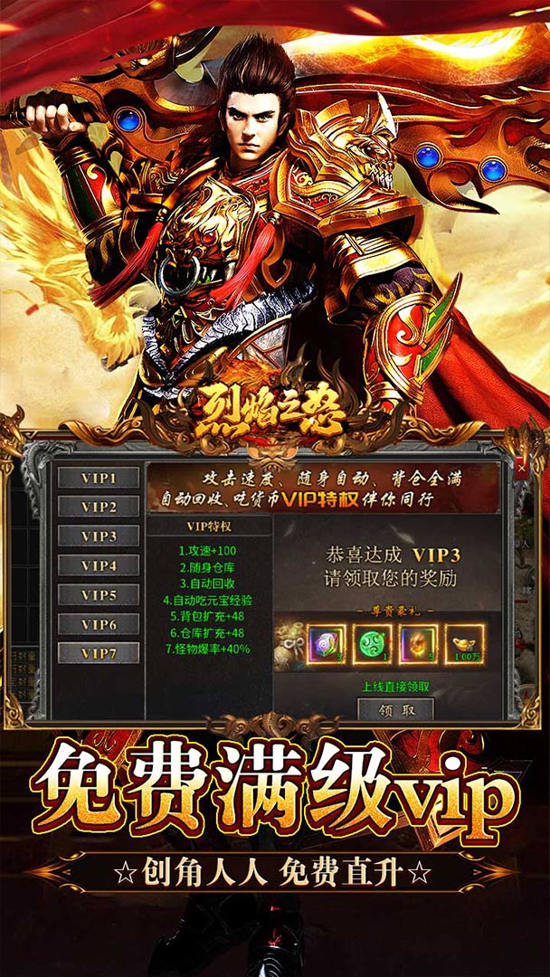 1、免费满级vip:创角直接人人免费直升满级vip!