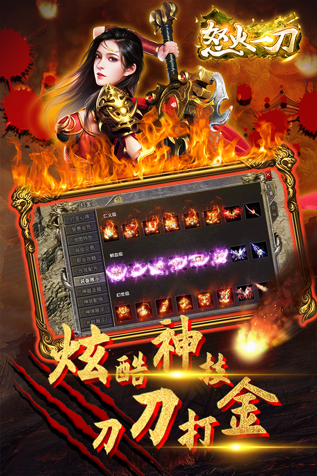 《怒火一刀》复刻经典的三职业打金神器玩法,原汁原味重现“散人打金”、“刀刀升级”、“装备回收”、“PK爆装”、“激情攻沙”的核心玩法。