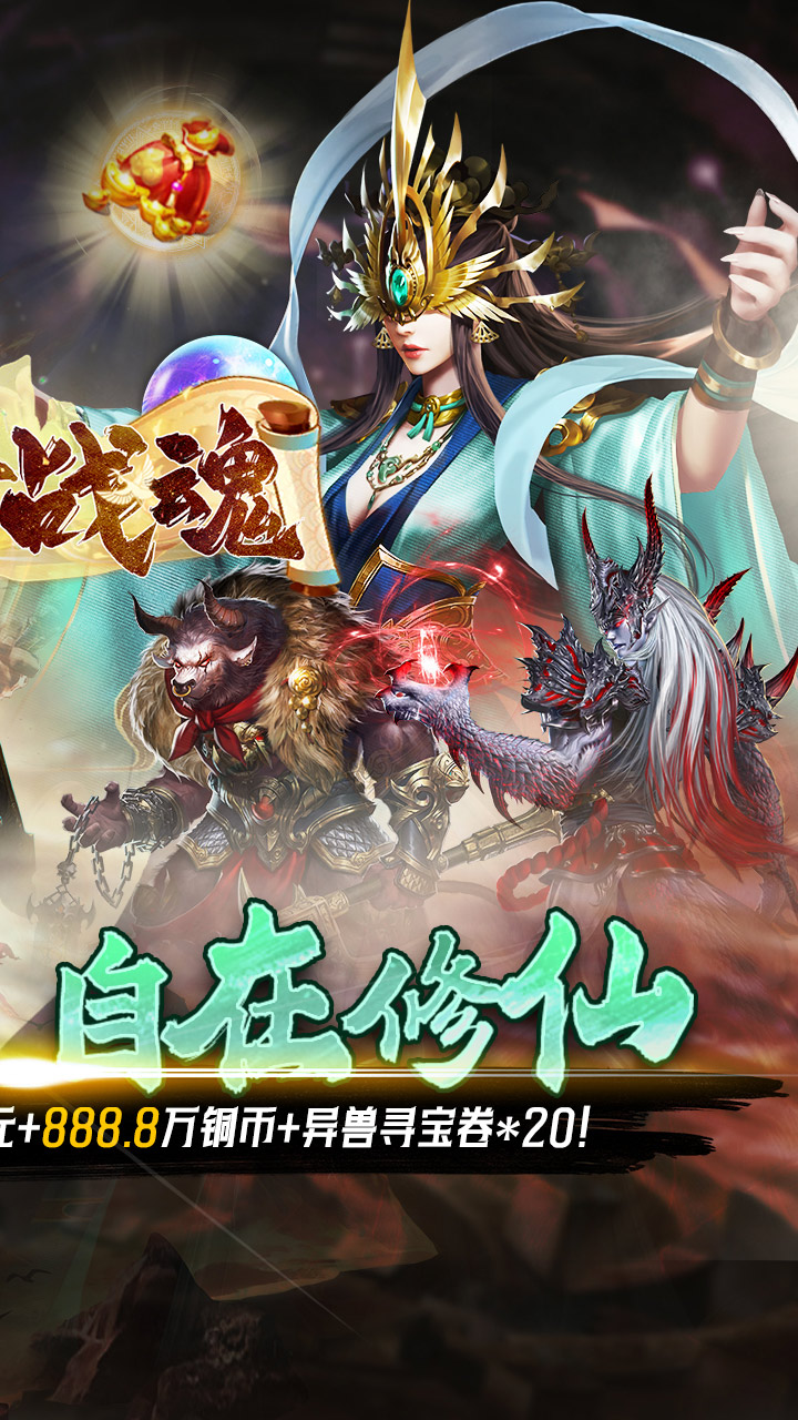 新人大礼包:开局狂送288888元宝+288888绑元+888.8万铜币+异兽寻宝卷*20!