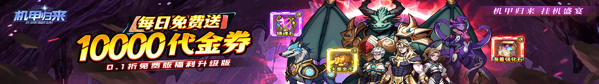 《机甲归来(0.1折天天送1W代金)》是一款充满美漫风格的MMO挂机游戏,它以精彩的特效和丰富的玩法为核心,带你进入一个前所未有的机甲战斗世界。游戏内,充值仅需0.1折的超值优惠,让你充值648元仅需6.48元,同时享受代金券最高10倍膨胀的福利。创角即送豪华大礼包,包括铸魂石、魔力、宝石、金币和强化石等珍稀资源,助你快速成长,轻松称霸。在这里,你可以随时挂机升级,也可以挑战各种精彩副本,与好友组队并肩作战,共同探索机甲世界的无限可能。
