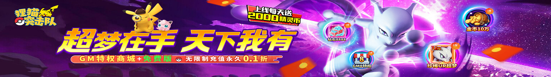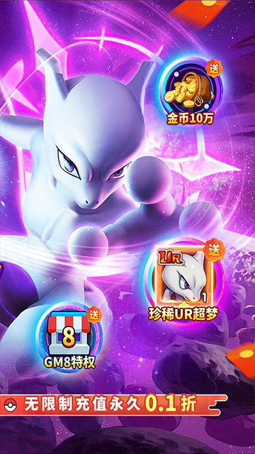 1、开局即送UR超梦*1,钻石*8888,金币*10万